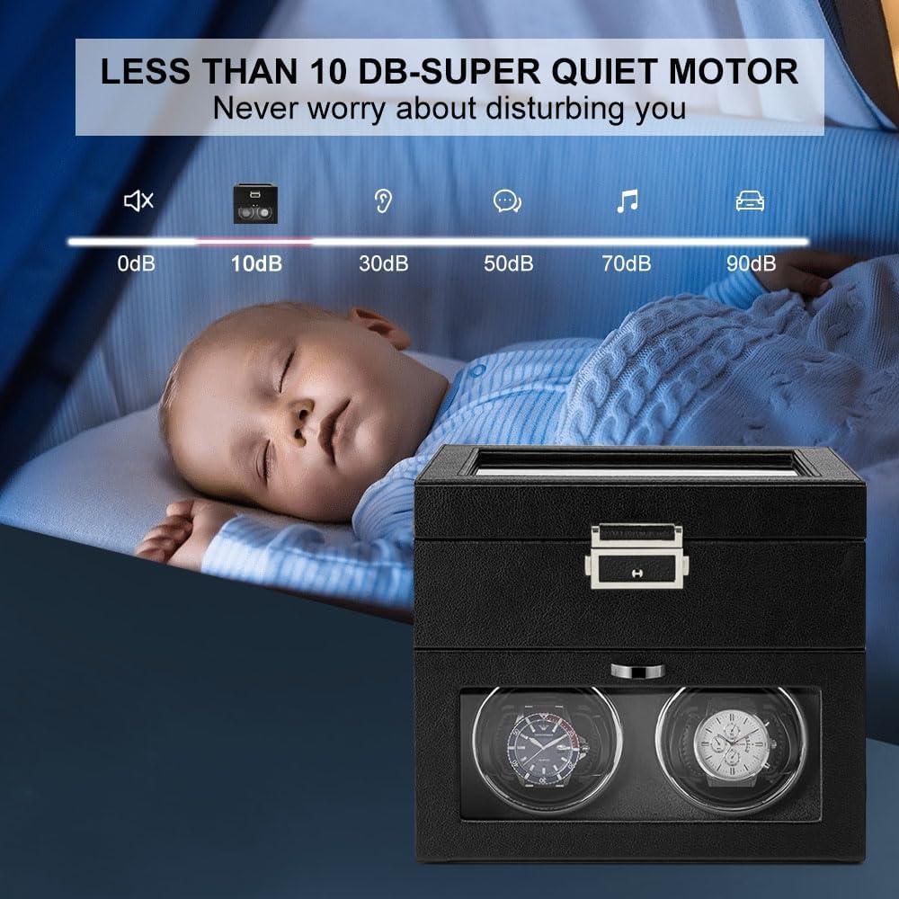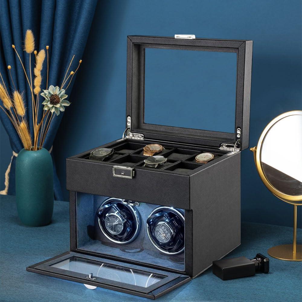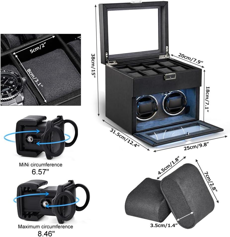 Automatic Double Watch Winder – Watch Winder with 8 Extra Storage Display Box,Japanese Quiet Motor, LED Light, Adjustable Watch Pillows, AC Adapter