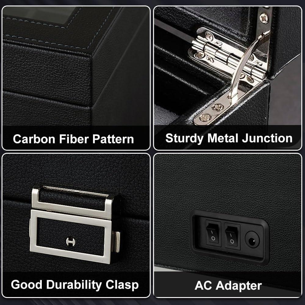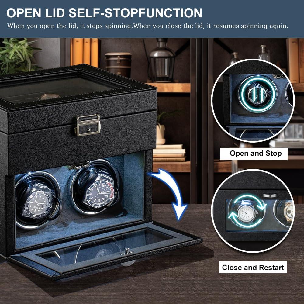 imageAutomatic Watch WinderDouble Watch Winder and 8 Extra Storage Display Box with LED LightJapanese Quiet MotorAdjustable Watch PillowsAC AdapterFathers Day Gift for MenBlack