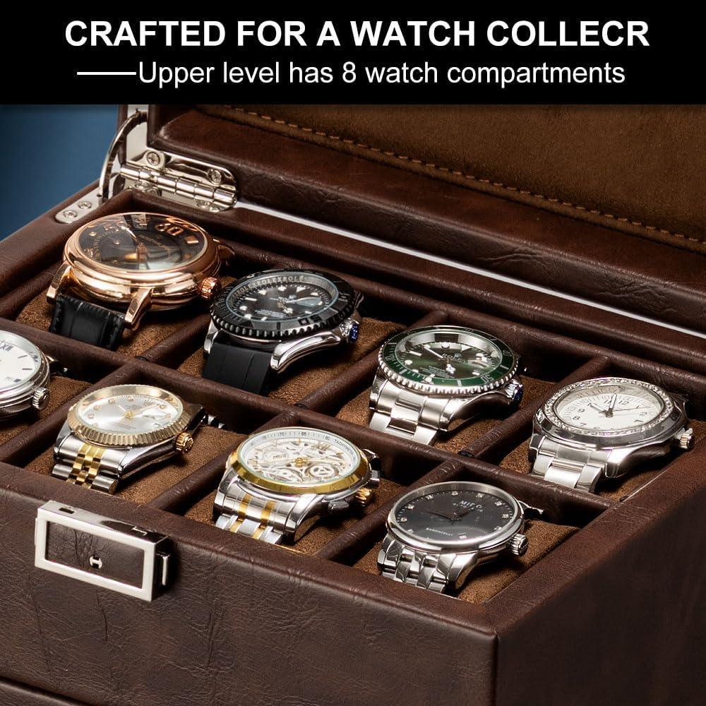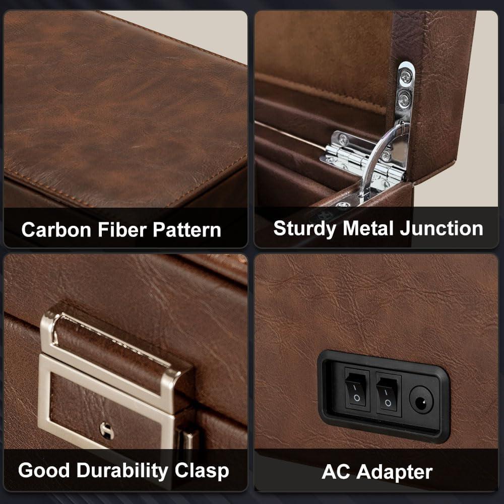 imageAutomatic Watch WinderDouble Watch Winder and 8 Extra Storage Display Box with LED LightJapanese Quiet MotorAdjustable Watch PillowsAC AdapterFathers Day Gift for MenBrown