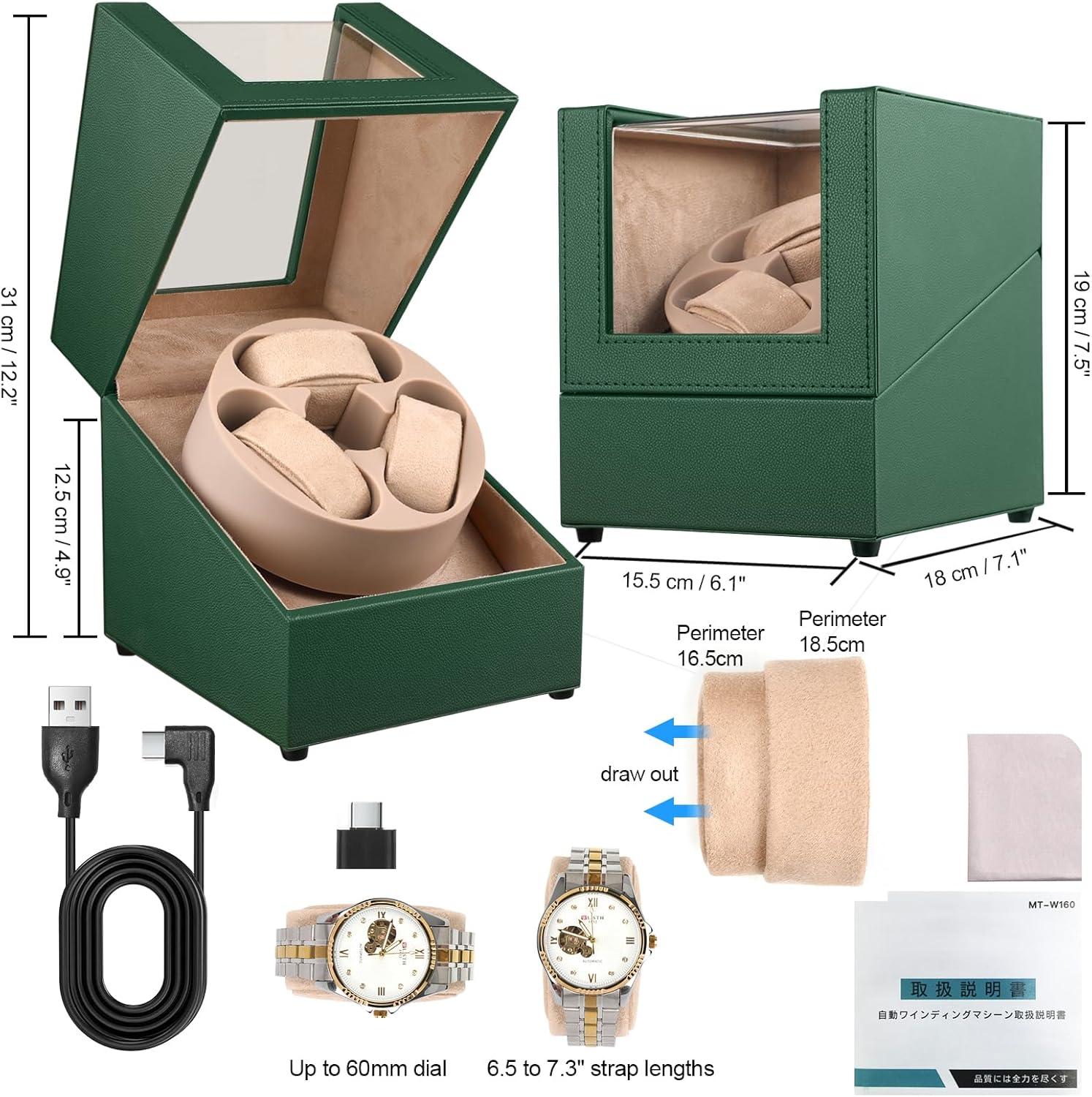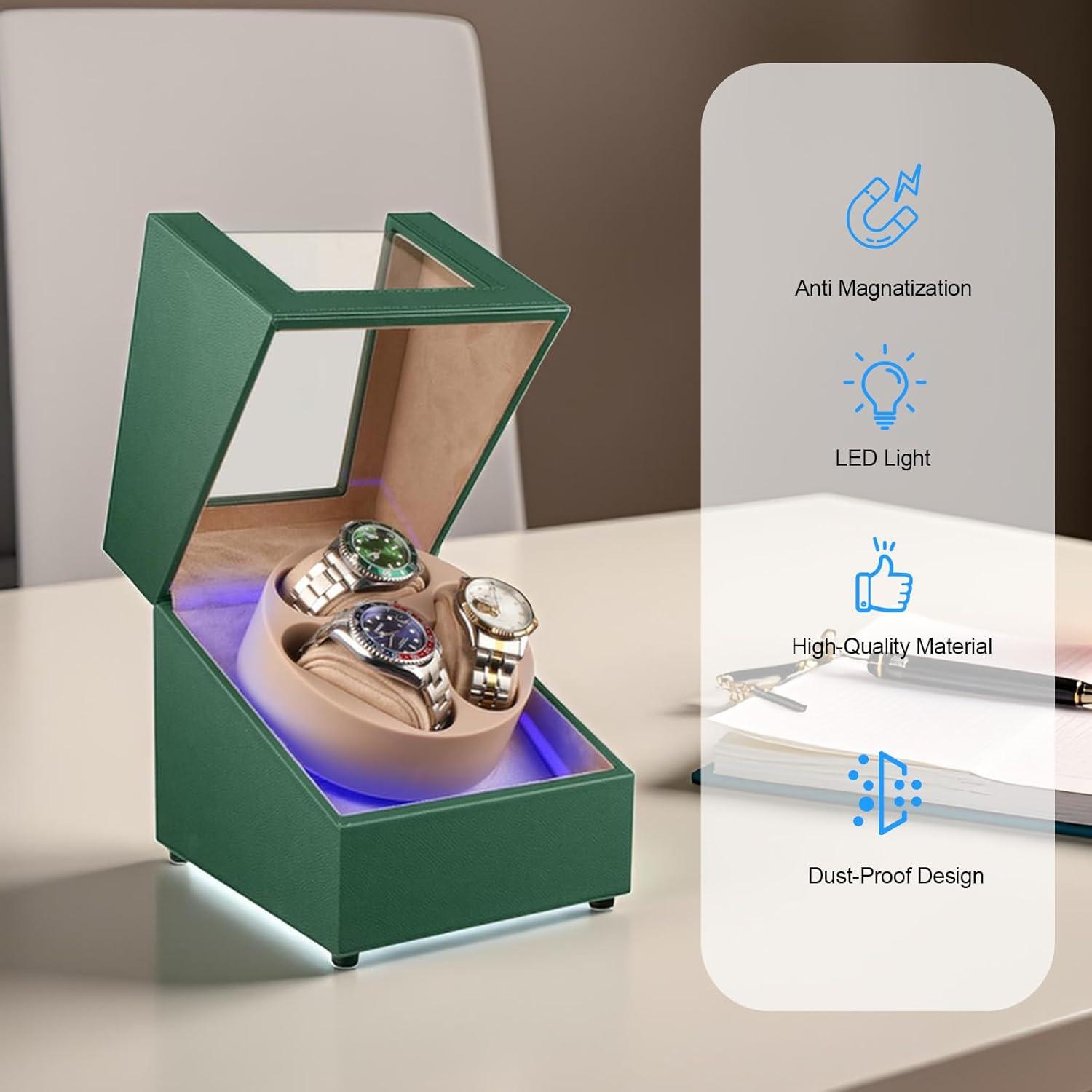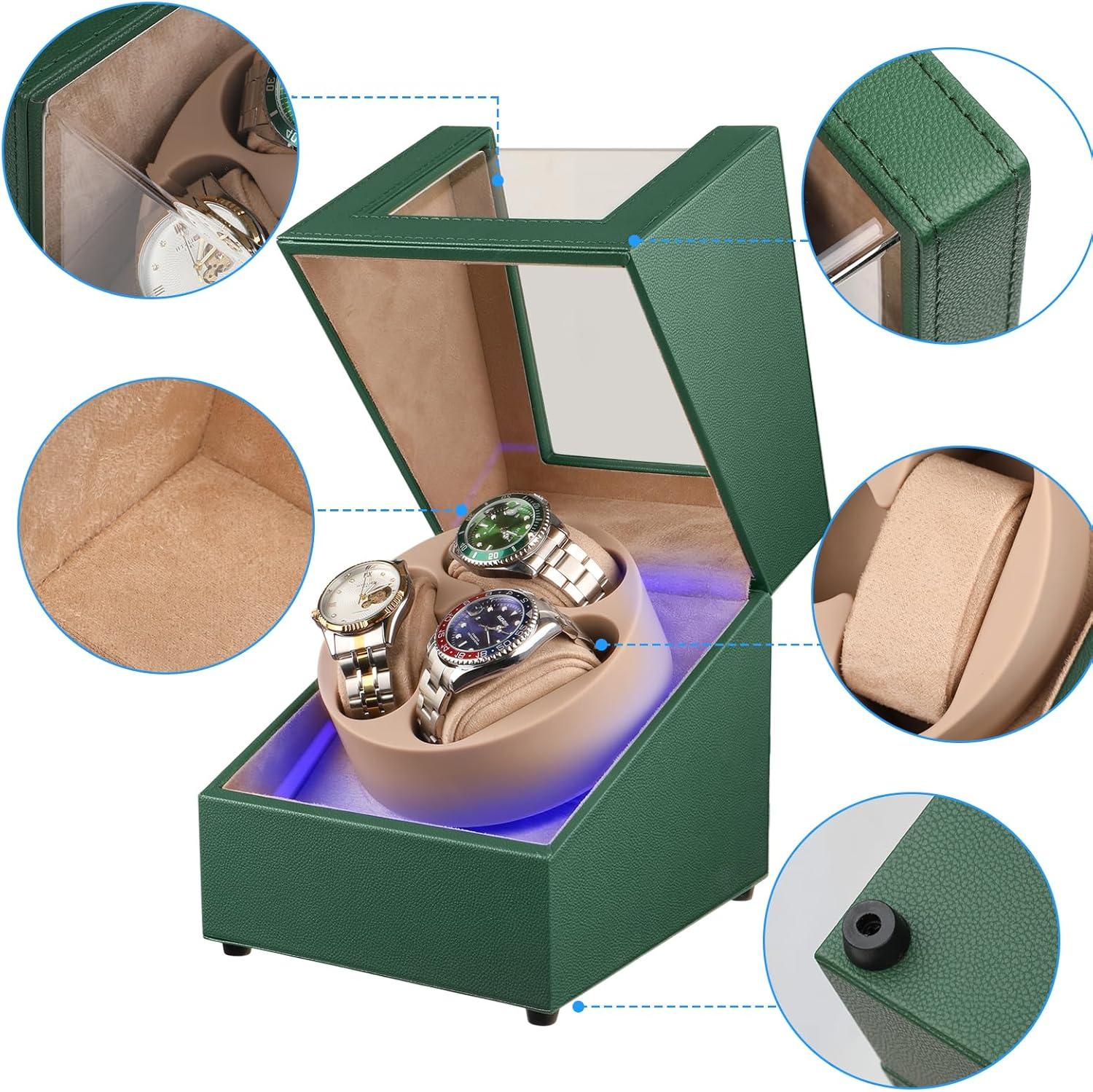 Automatic Watch Winder box with LED and 4 Modes, 3 Watch Winder Super Quiet Mabuchi Motor with USB Type C, Watch Rotator for Man Women